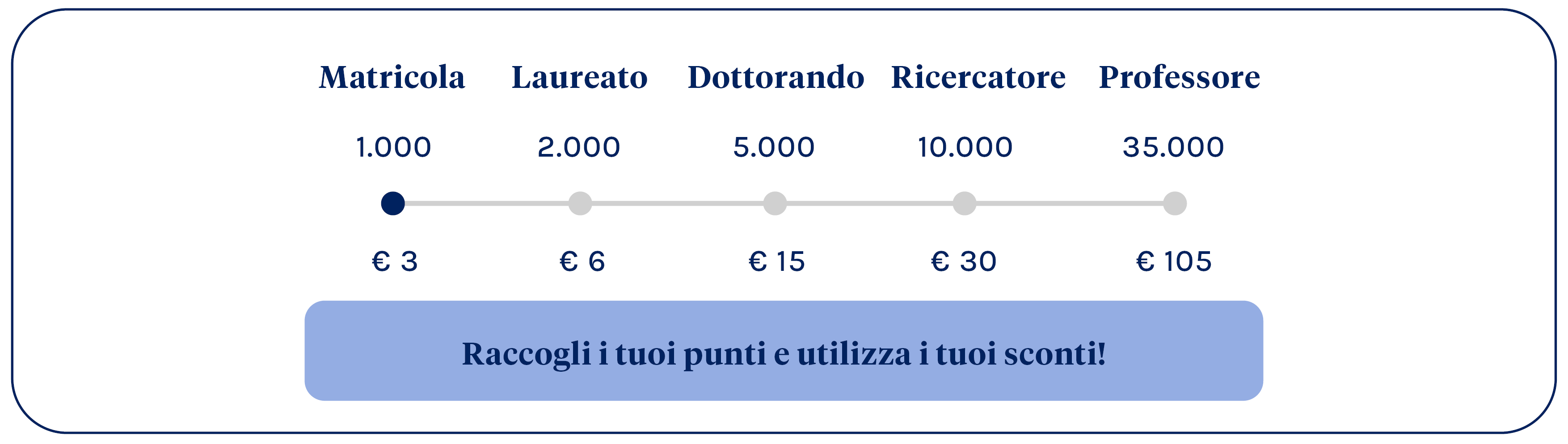 Per ricompensare la tua fedeltà e creare una community di appassionati del “sapere” abbiamo pensato all’Accademia dei Premi, un programma fedeltà su misura, accessibile dal proprio account.